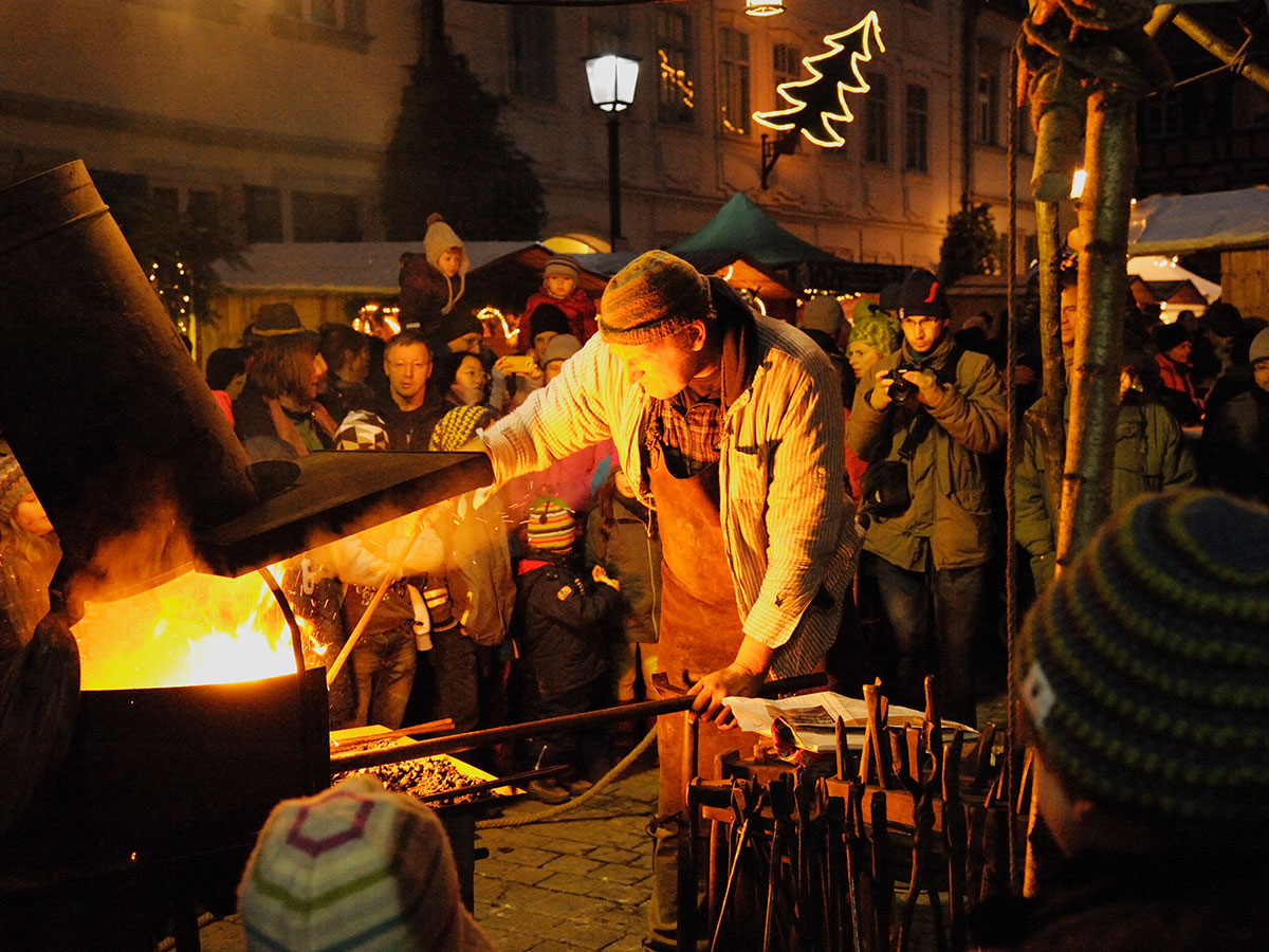 De Bamberger kerstmarkt in Duitsland biedt meer dan alleen winkelen. Een van de hoogtepunten zijn de indrukwekkende smeeddemonstraties van een lokale kunstsmid, die bezoekers verwondert met zijn vaardigheden en creativiteit. Daarnaast worden er ‘s avonds prachtige kerkmuziekconcerten gehouden, die een extra magische sfeer aan de kerstmarkt toevoegen. Voor de kinderen is er ook veel te beleven: de Heilige Nikolaus komt met een zak vol kleine cadeautjes, en de kinderen kunnen hun hart ophalen bij de verschillende activiteiten die speciaal voor hen zijn georganiseerd.