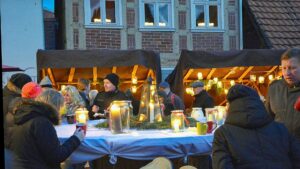 Naarmate de avond valt, transformeert de kerstmarkt in een sprookjesachtige setting, verlicht door het warme schijnsel van kaarsen en gloeiende kolenvuren. Dit zorgt voor een unieke en romantische ambiance, waarin bezoekers kunnen genieten van de verschillende kraampjes vol handgemaakte producten, lekkernijen en feestelijke decoraties.