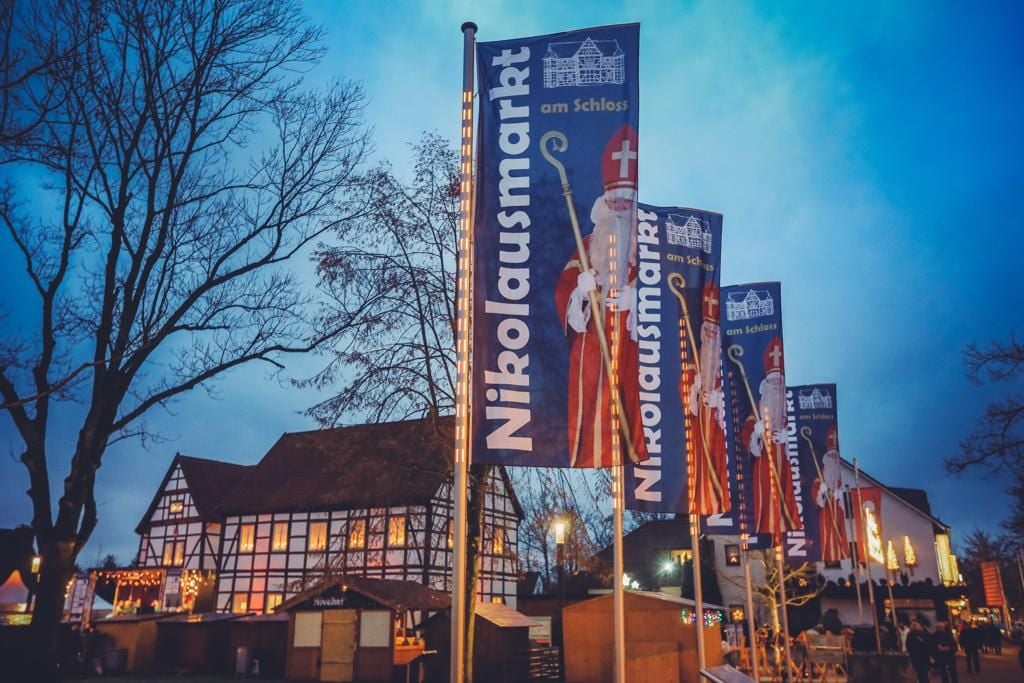 De kerstmarkt in Hövelhof, beter bekend als de Nikolausmarkt, is een betoverende gebeurtenis die je niet mag missen. Gelegen in het pittoreske dorpje Hövelhof, nodigt deze kerstmarkt bezoekers uit om te genieten van de feestelijke sfeer die het hele dorp doordringt. De klanken van traditionele kerstliederen vullen de lucht en creëren een warme en uitnodigende ambiance. Voor het historische jachtslot in het hart van het dorp worden gezellige, met zorg versierde houten hutten opgesteld. Hier vind je een breed scala aan handgemaakte kunstwerken, uniek speelgoed en sfeervolle decoraties – perfect voor het vinden van dat bijzondere cadeau voor onder de kerstboom.