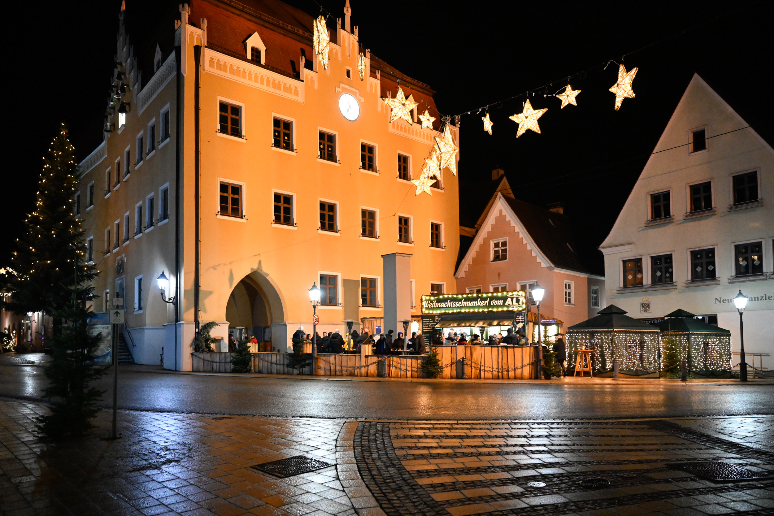 ‘s Avonds transformeert de Altstadtinsel in een magisch lichtenparadijs met meer dan 500 brandende kaarsen en fakkels, die samen met grote verlichte sterren de sfeer van de kerstmarkt versterken. Dit zorgt voor een onvergetelijke ambiance die perfect is voor een romantische wandeling of een gezellige avond met vrienden en familie.