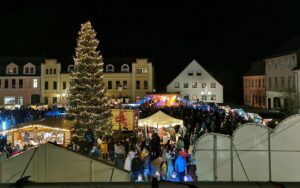 Ca. 40 Vereine, Händler, Handwerker und Schausteller rund um den Weihnachtsbaum in Rothenburg in der Oberlausitz laden zum diesjährigen Weihnachtsmarkt auf dem Rothenburger Marktplatz ein. Wie in den vergangenen Jahren, gestalten Vereine und Kindereinrichtungen ein abwechslungsreiches Programm auf der Bühne. Natürlich darf der Weihnachtsmann und eine Kindereisenbahn auf dem Rothenburger Weihnachtsmarkt nicht fehlen. Ob Langos, Bratwurst, Knobibrot, Fischgerichte oder Glühwein, Met oder Kinderpunsch, ein Besuch lohnt sich auch kulinarisch. Auf der kleinen Weihnachtsmarktbühne wechseln sich Programme des Männergesangverein, dem Spielmannszug und von Kindereinrichtungen der Stadt ab.