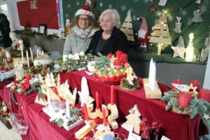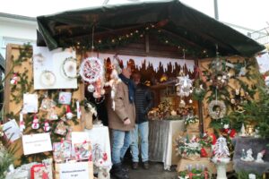 De kerstmarkt staat vol met stands van lokale hobbykunstenaars en verenigingen. Hier vind je handgemaakte sokken, sjaals en mutsen, evenals kunstzinnige houtwerken, Schwibbögen, kaarsen en kerstballen met persoonlijke gravures. De geur van versgebakken reibekuchen, glühwein en kerstkoekjes vult de lucht en nodigt uit om te proeven en te genieten.